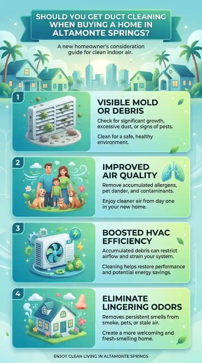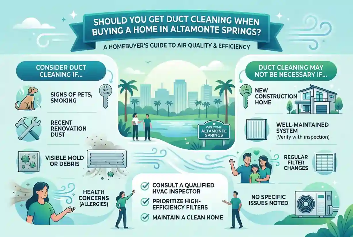 The honest question for most Altamonte Springs resale buyers isn't whether to clean — it's why you would wait. Unknown occupancy histories, pre-sale renovation activity, and years of Central Florida humidity operating inside the duct system make the answer straightforward for the overwhelming majority of properties in this market.
